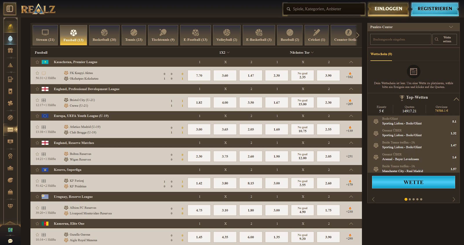 Live Casino, Sportwetten