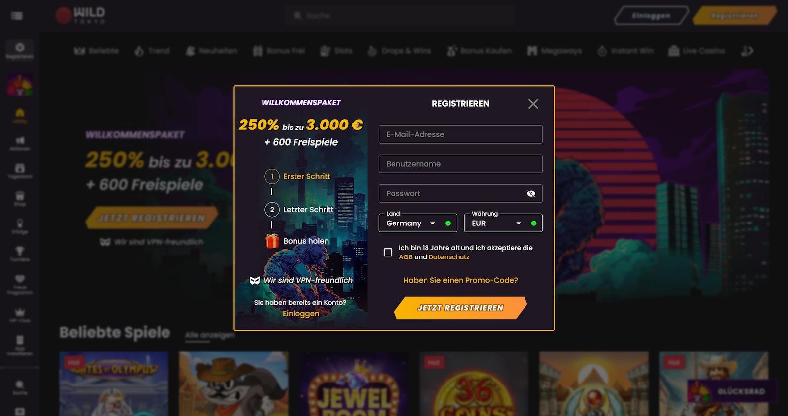 250% Willkommenspaket bis 2500 €